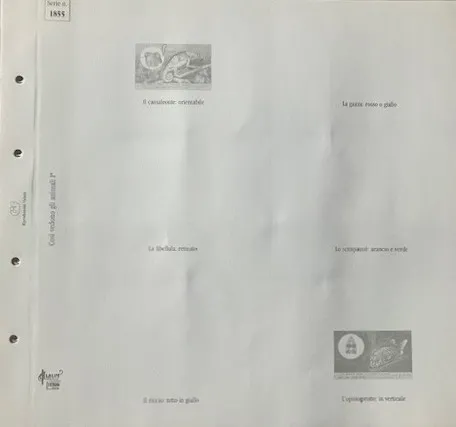Tra un foglio e l’altro è interposto un cartoncino divisorio con indicato il titolo, il numero della serie e la descrizione di ogni figurina.