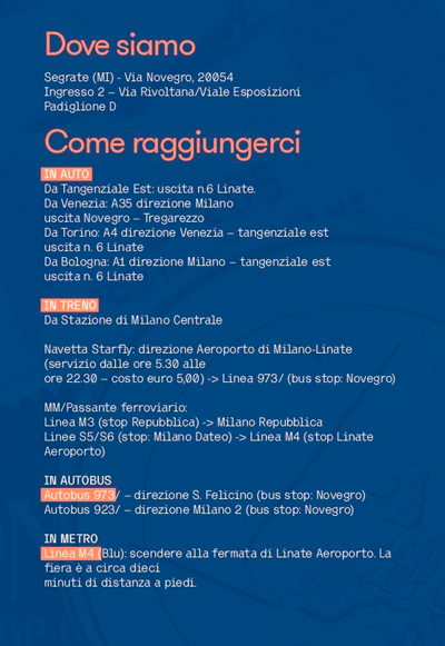 Ingresso gratuito previa registrazione su Eventbrite o direttamente in fiera.