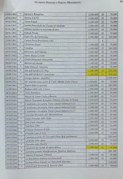 Tabella delle emissioni in ordine di data dal 2000 al 2013