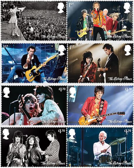Escono giovedì prossimo gli otto valori inglesi, accompagnati da foglietto e produzioni collaterali, per i Rolling Stones