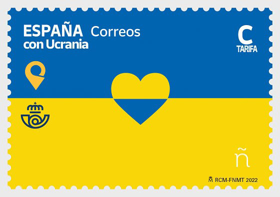 La Spagna si è aggiunta alle amministrazioni postali che hanno reso un omaggio filatelico all’Ucraina. Si tratta di un francobollo con i colori della bandiera del Paese aggredito anche se non risulta, come nel caso di altre emissioni europee, una sovrattassa per iniziative di beneficienza. Il valore è anche un gesto di riconoscenza per gli spagnoli che hanno offerto concretamente aiuto alle vittime del conflitto; sono infatti stimati in 137.000 i rifugiati ucraini che dal 24 febbraio hanno trovato asilo in Spagna. Tutto tace invece in Italia dove, su iniziative di privati si sono fatti i primi passi presso il MiSE per una possibile emissione sullo stesso registro.
