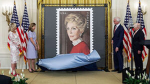Una coppia presidenziale in francobollo è difficile vederla, almeno nel paese d’origine. Lui, Ronald Reagan, 40° presidente degli Stati Uniti dal 1981 per due mandati, è stato il simbolo di un’epoca a cui Washington aveva dedicato un francobollo nel 2005 e uno nel 2011. Ora è toccato alla consorte Nancy (1921-2016) apparire su un valore dentellato. Ma non per un semplice legame parentale o per i trascorsi cinematografici. La First lady infatti, oltre che attrice, fu un’attiva sostenitrice di campagne di impegno sociale; tra queste, iniziative per la ricerca sul cancro al seno, sull’Alzheimer, per il Foster Grandparents Program, un progetto di volontariato per gli over 55enni. Da ricordare anche la sua attività e le sue posizioni contro la droga. Nella foto (da ABC News), la presentazione del francobollo; a sinistra, l’attuale First Lady, Jill Biden, affiancata dalla nipote dei Reagan, Anne Paterson.
