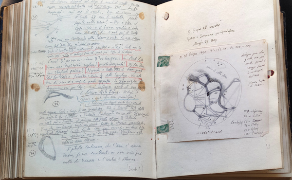 La notizia, ripresa da vari mezzi di comunicazione, è un dovuto riconoscimento ai francobolli e a un loro uso alternativo, seppur di fortuna. Al termine di lavori di restauro, nei diari dell’astronomo Giovanni Schiaparelli (1835-1910; illustre apparso su un commemorativo italiano nel 2010, Unificato n. 3236), undici grandi taccuini con osservazioni e appunti del periodo 1875-1900, sono apparse pagine con francobolli; nello specifico si tratta di frammenti il cui uso è stato quello di applicare alle pagine degli appunti mobili. Dalle foto disponibili si possono riconoscere “pezzi” del 5 centesimi verde con il ritratto di Vittorio Emanuele III, il cui uso è qui alla stregua di un nastro adesivo di emergenza. Possiamo parlare forse di una passione segreta dello scienziato?