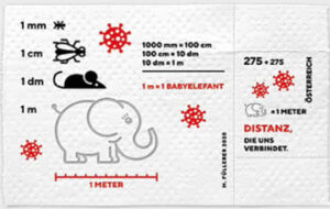 Il recente foglietto di Austria sul Covid-19, una novità assoluta, forse è anche un tentativo di sdrammatizzare un po’ l’atmosfera di questo periodo. L’emissione raffigura una serie di animali di varie dimensioni con in evidenza un piccolo elefante la cui lunghezza di un metro dovrebbe essere sempre presa a riferimento ideale per il distanziamento sociale. Il valore, frutto di una collaborazione tra le Poste di Vienna e una ditta specializzata del settore, è inoltre realizzato su carta igienica che a suo modo critica la maniacale corsa all’incetta di beni durante il lockdown dei mesi scorsi. Non manca però un serio aggancio solidale con un sovrapprezzo di 2,75 euro per ogni foglietto che sarà devoluto in beneficenza.